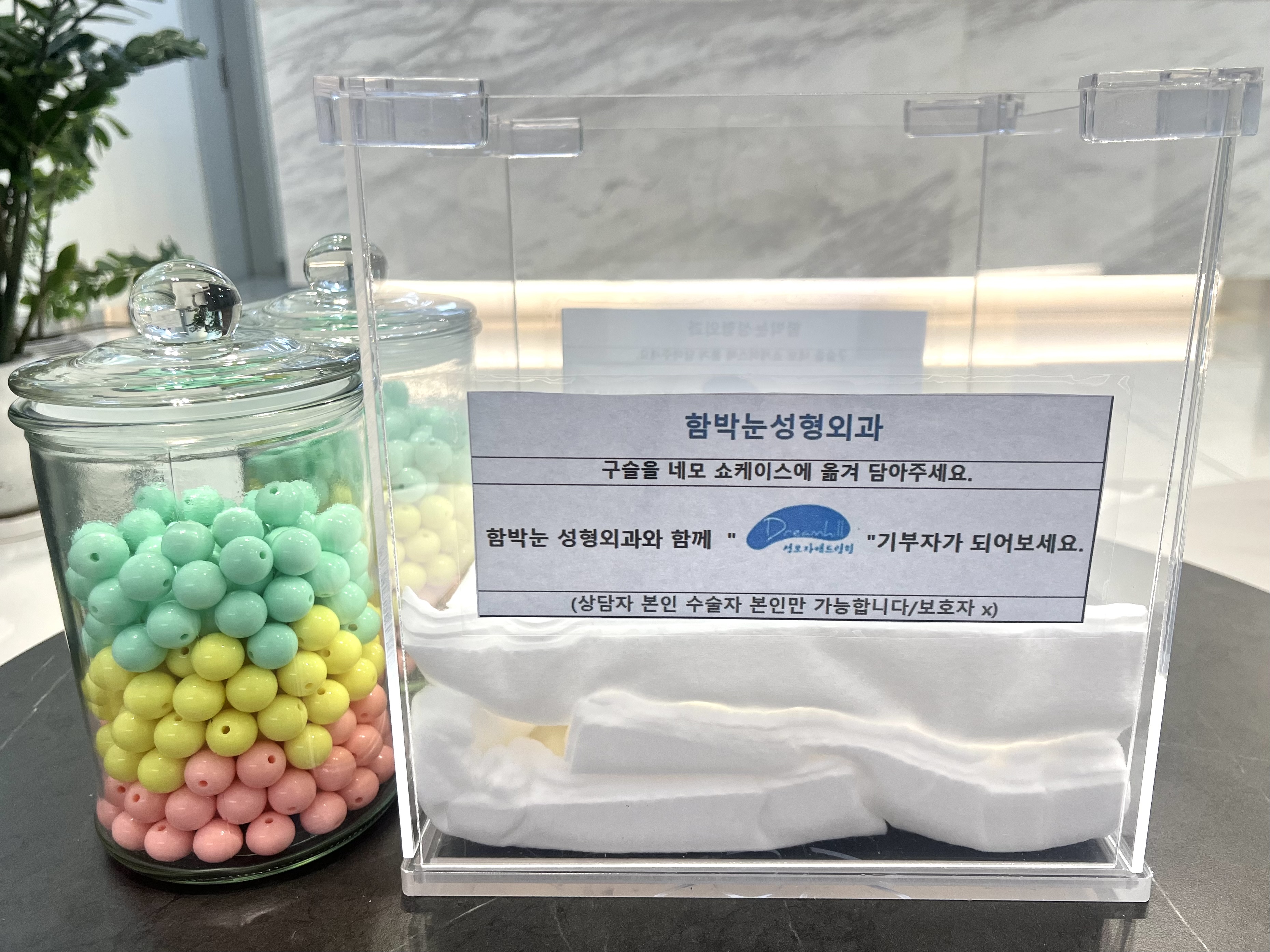 본원에서 상담, 수술 하시는 고객님 구슬을 투명박스에 넣어주시면